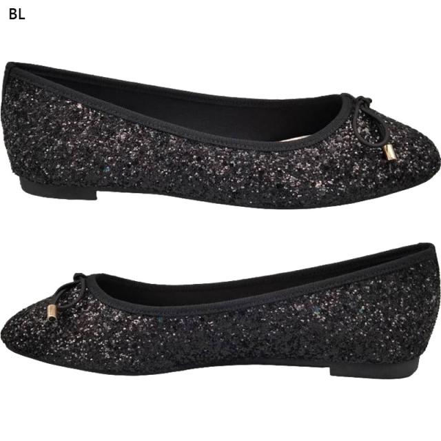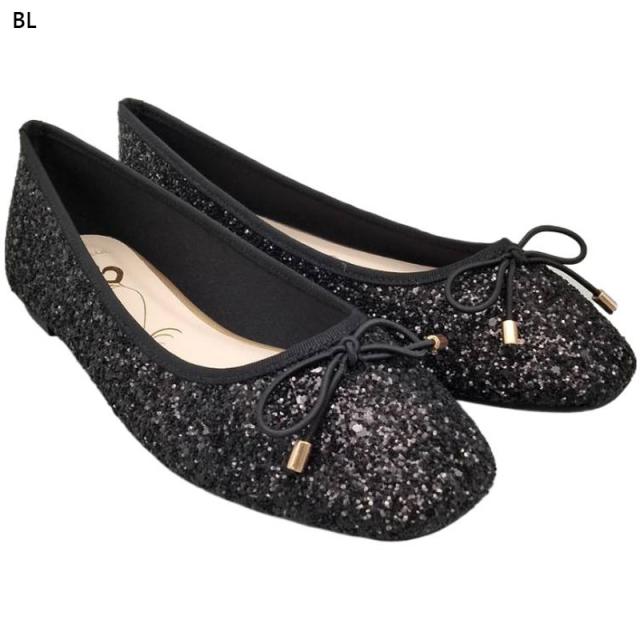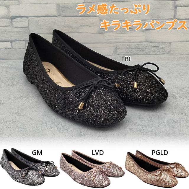 フレグラント レディース パンプス 靴 シューズ ローヒール フラット ペタンコ ぺたんこ ラメ キラキラ スクエアトゥ バレエシューズ カジュアル 結婚式 ブラック 黒 シルバー ゴールド 送料無料 Fragrant 2277