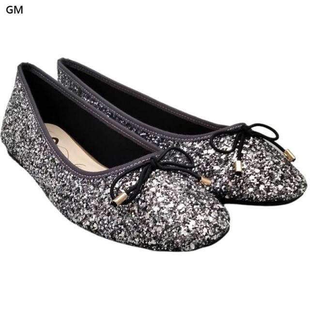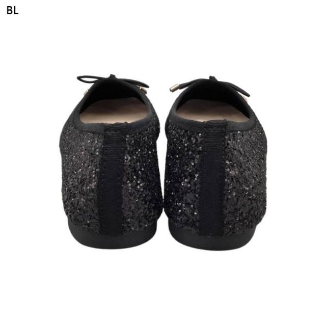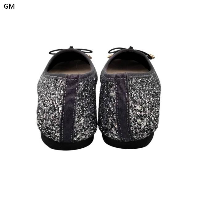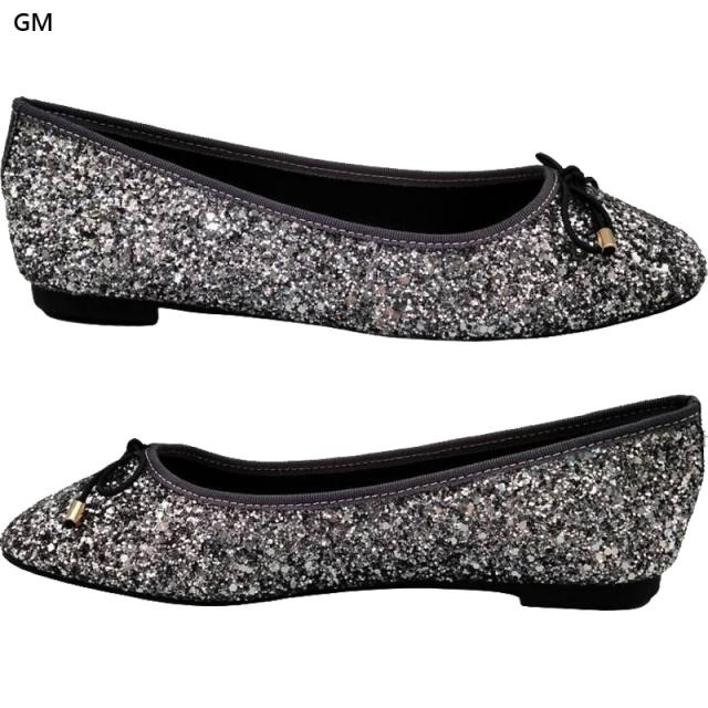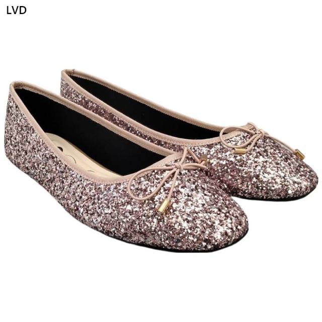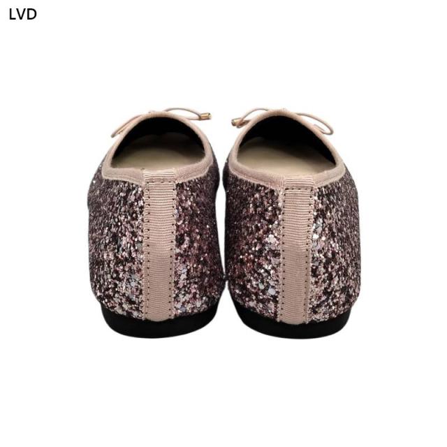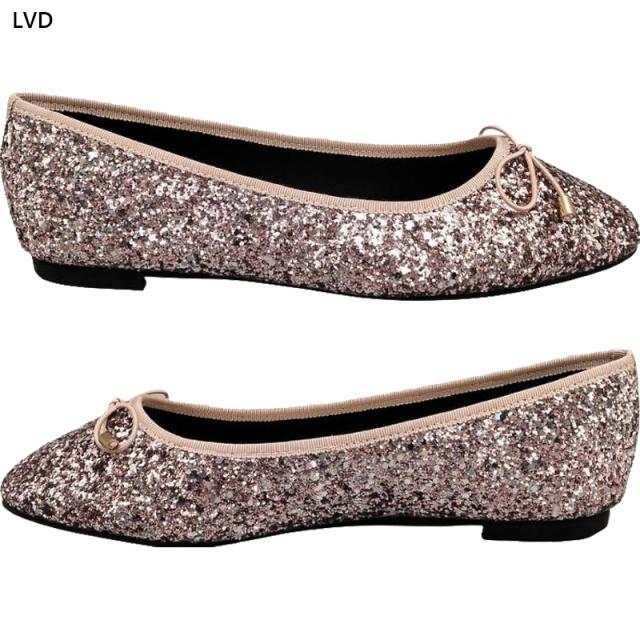 ラメ感たっぷりのローヒールバレエシューズ。