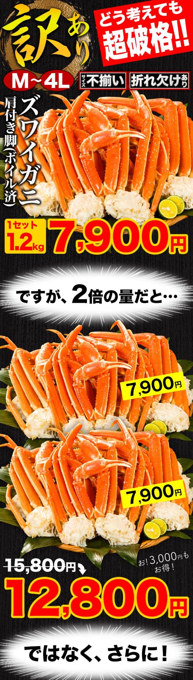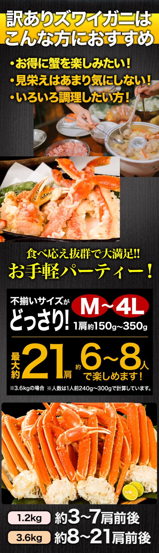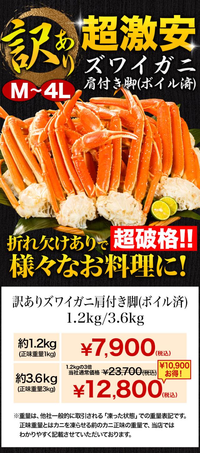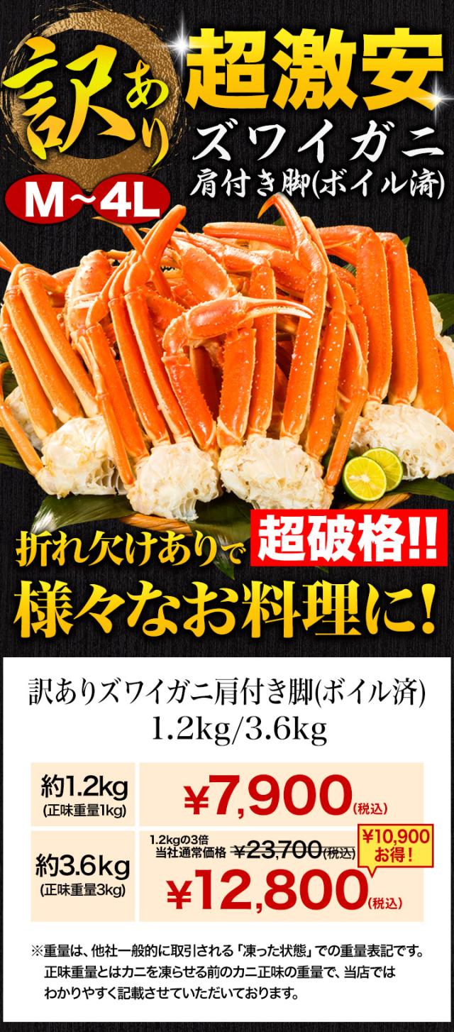3.6kg (正味重量3kg) 約8〜21肩 訳ありズワイガニ肩付脚 ボイル済 ズワイ ズワイガニ ずわいがにボイル ズワイガニ脚 カニ肩付き脚 かに茹で済 全国送料無料