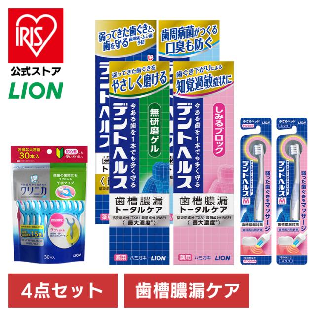 デントヘルス 薬用ハミガキ 4点セット(ハミガキ・ハブラシ×2・デンタルフロス) LION ライオン デントヘルス 知覚過敏 研磨剤無配合 口臭ケア 歯周病予防 トータルケア 歯みがき 歯ブラシ デンタルフロス 歯間清掃 Y字タイプ ホームケア