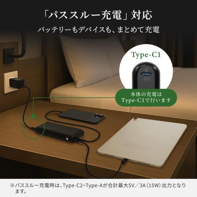 モバイルバッテリー 20000mAh PD60W入出力対応 USB Type-C入出力/USB Type-A出力 バッテリー残量が数値で分かる