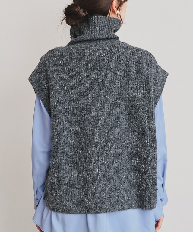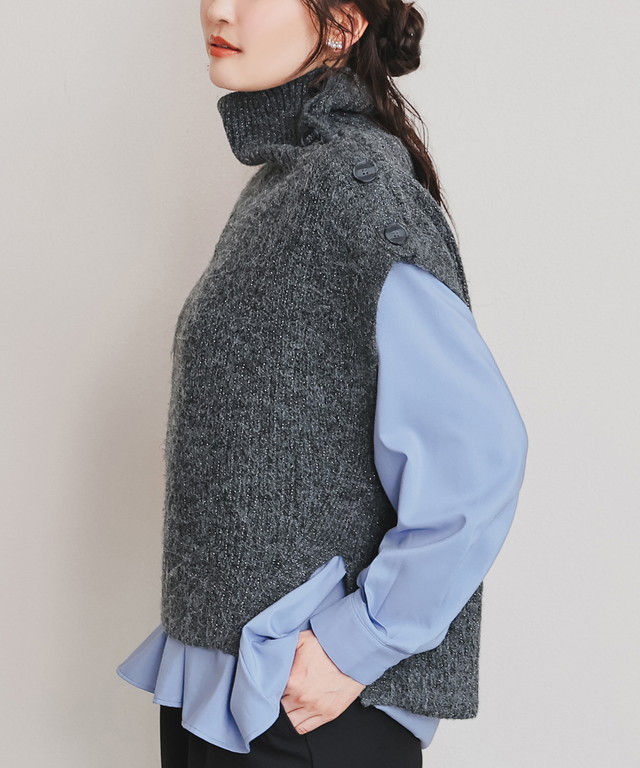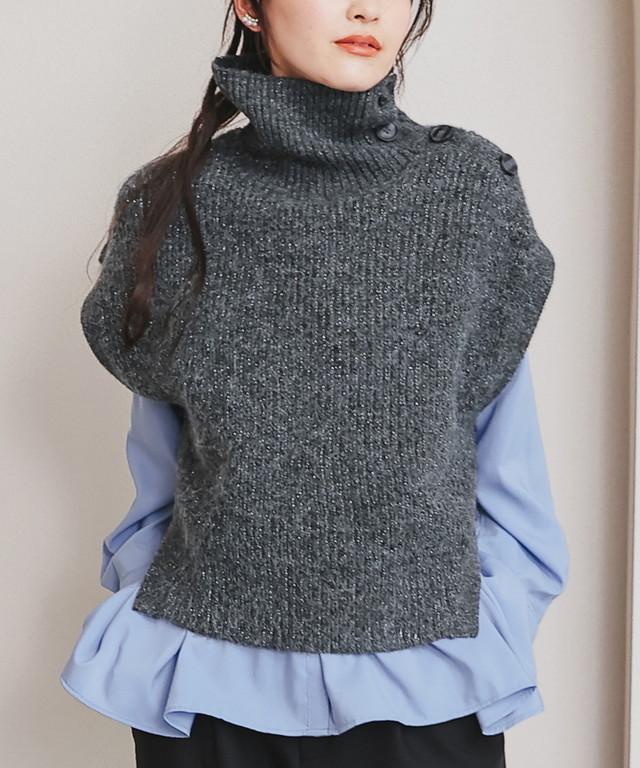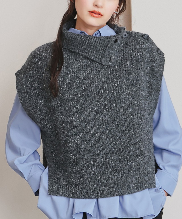 トップス ベスト ニット セーター ノースリーブ ハイネック 肩ボタン ラメ糸入り フェミニン 冬 レディース SALE セール Honeys ハニーズ 肩釦ニットベスト