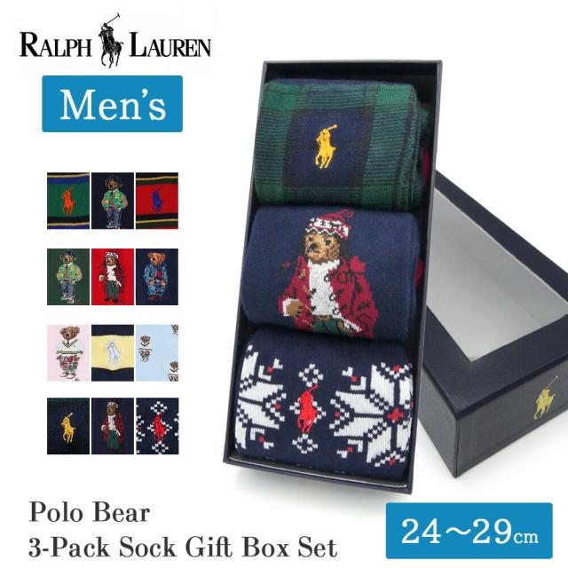 ポロ ラルフローレン ポロベア 靴下 メンズ 3足セット クルー ソックス ギフトセット ギフトボックス 3P POLO Ralph Lauren ラルフ Polo ベア テディベア BEAR くま ポニー 刺繍 ワンポイント ブランド かわいい カジュアル スポーツ ギフト プレゼント