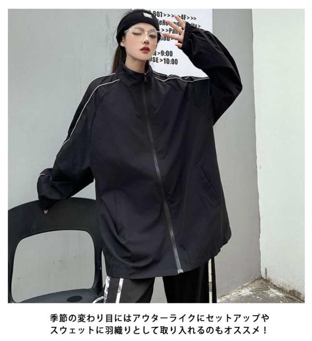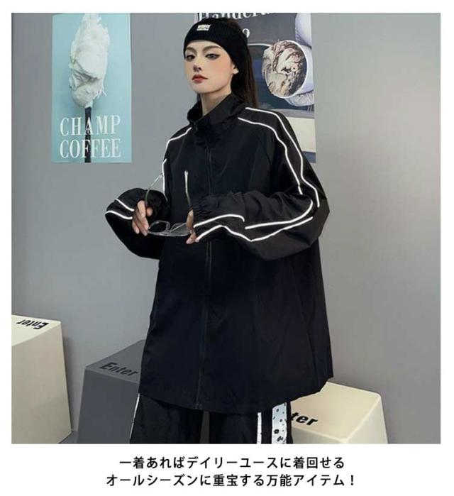 ナイロンジャケット サイドライン ジャケット トラックジャケット レディース メンズ アウター ブルゾン スウェット ジャージ ビッグシルエット ゆったり オーバーサイズ 光る 反射テープ マウンテンパーカー スプリングジャケット ジップアップブルゾン