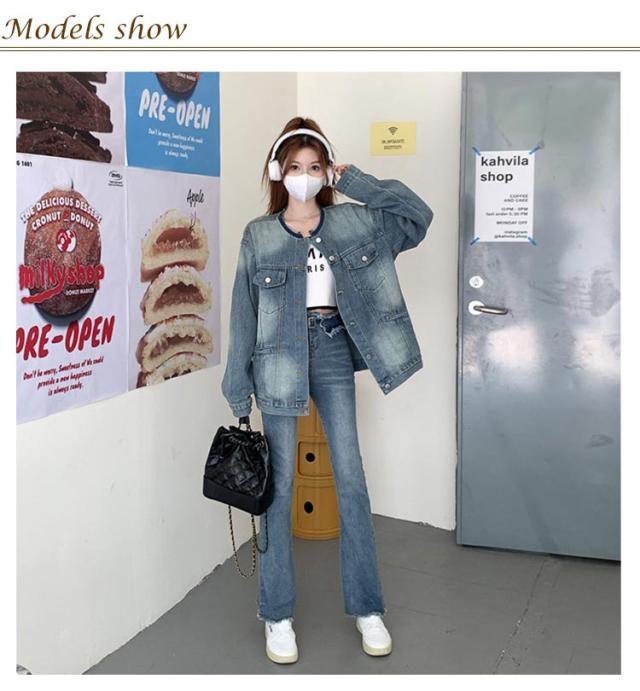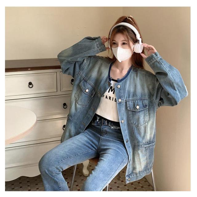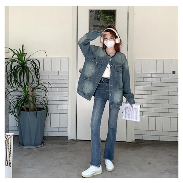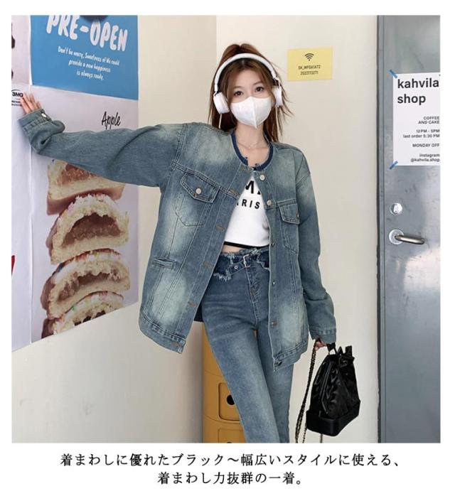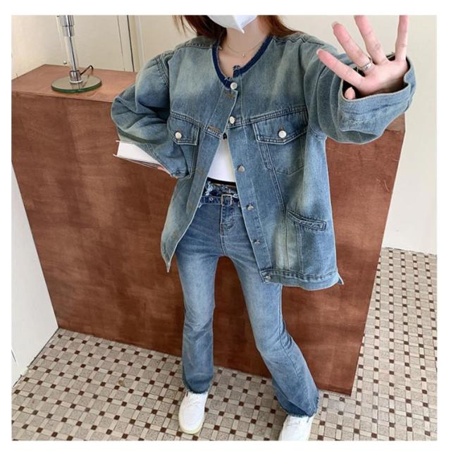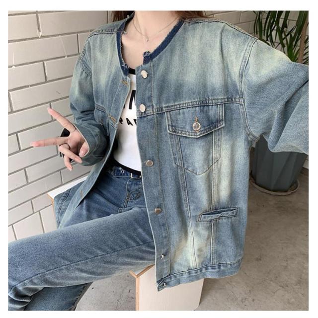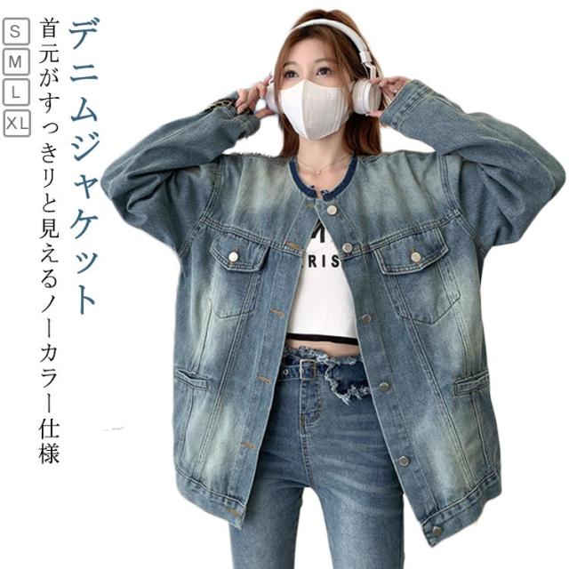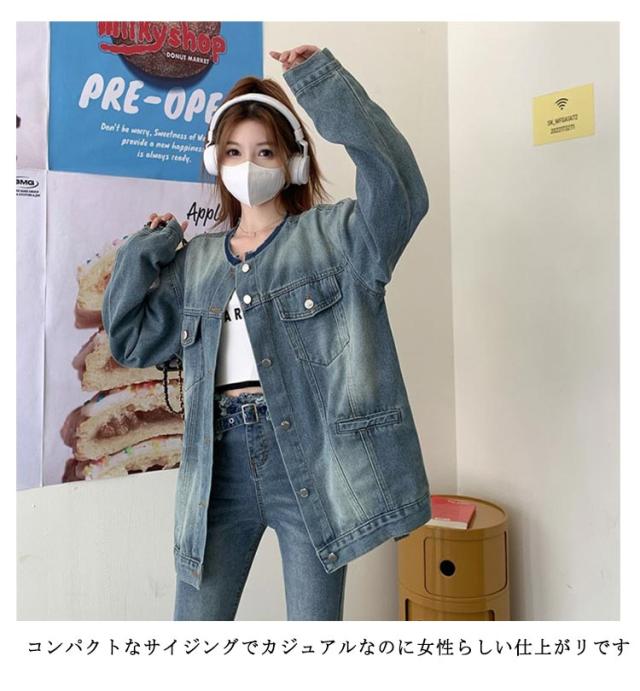 ノーカラー ジャケット レディース デニムジャケット Gジャン ジージャン デニム ジャケット 長袖 ショート ジージャン ジャケット スリム ショート丈 アウター ライトアウター 羽織 カットオフ ゆったり 大人 トップス 韓国 ファッション アウター ブルー