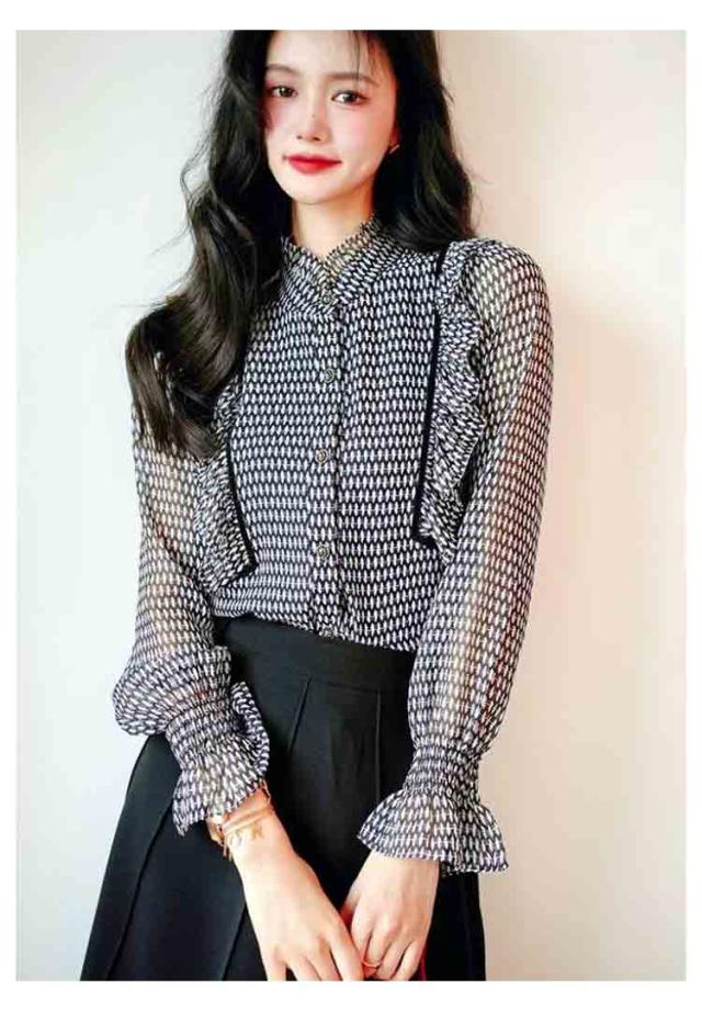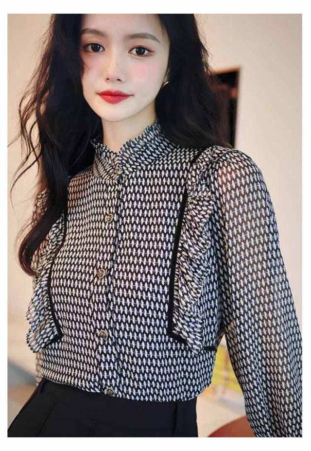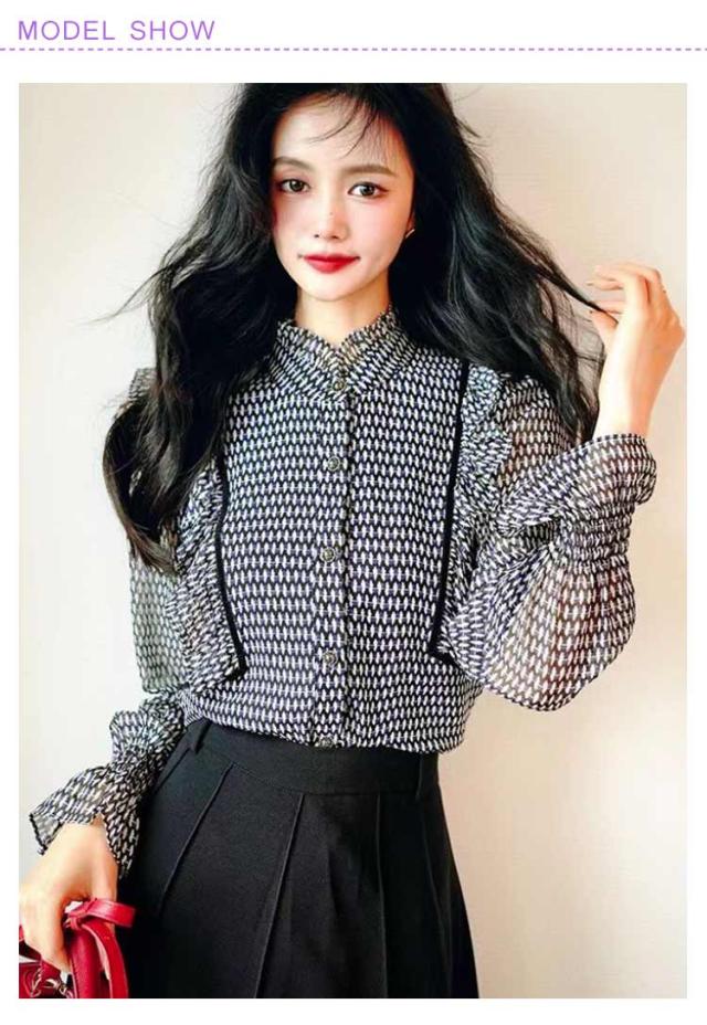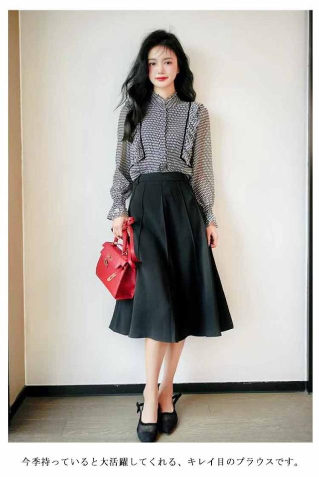 ブラウス レディース 長袖ブラウス シフォン 春秋新作 スタンドカラー オフィスブラウス オシャレブラウス ドット柄トップス 大人 おしゃれ フォーマル オフィス 通勤 OL カジュアル きれいめ 可愛い ゆったりシャツ40代20代30代50代 送料無料