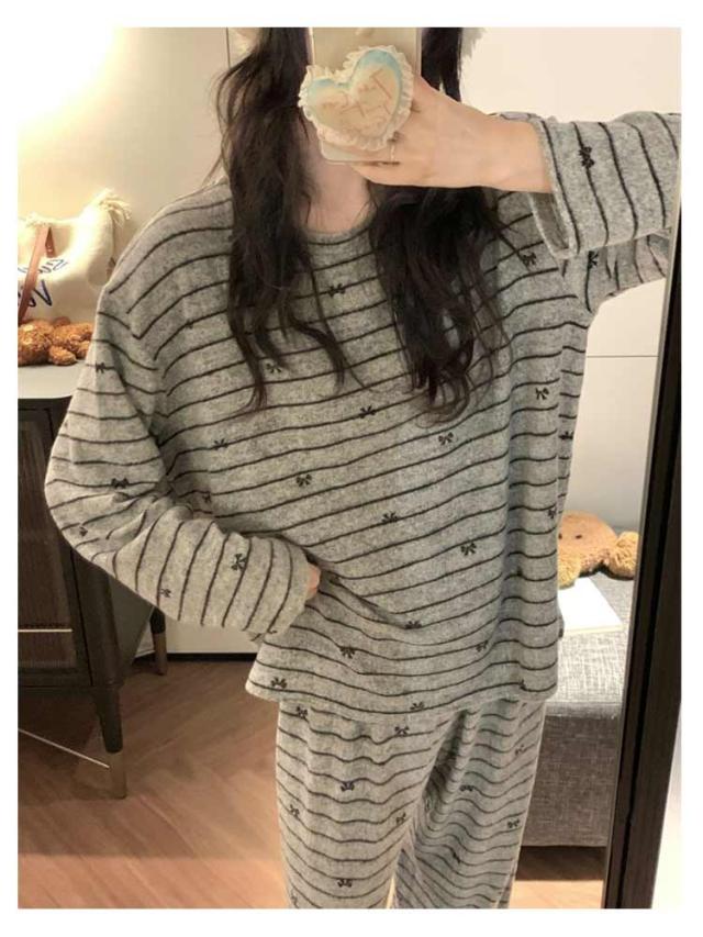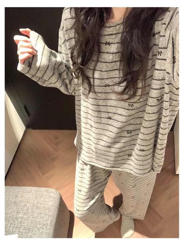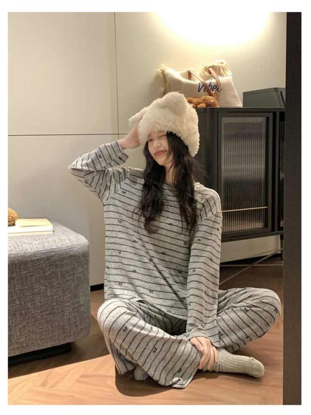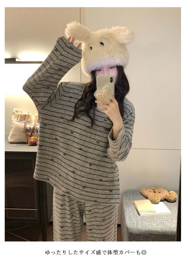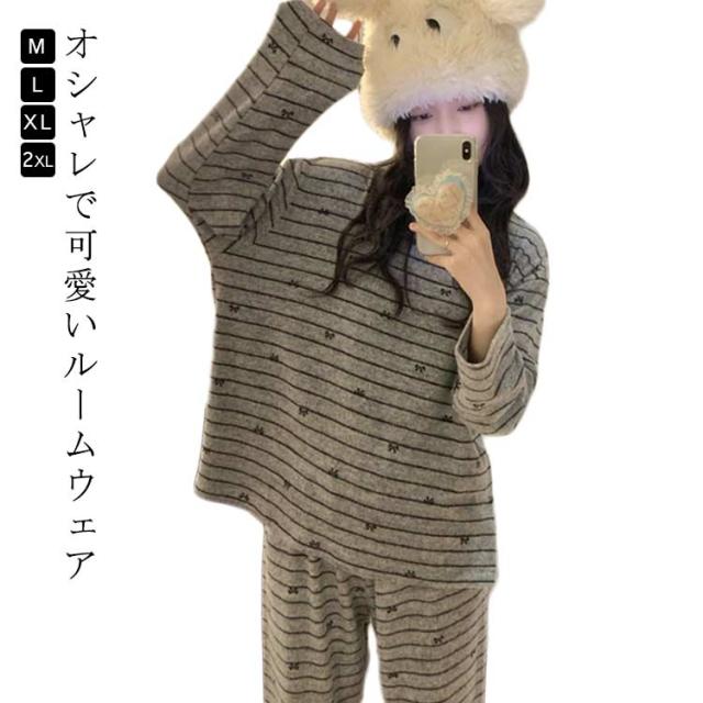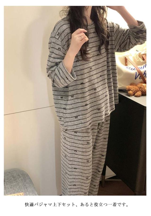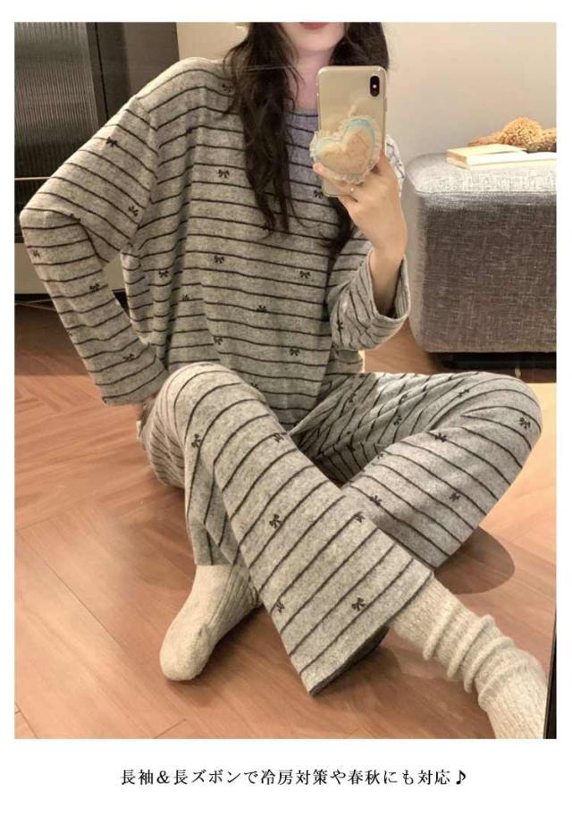 ルームウェア パジャマ レディース 上下セット 長袖 長ズボン 春 夏 秋 薄手 セットアップ ボーダー柄 かわいい クルーネック 寝間着 部屋着 通気性 ゆったり 大人可愛い リラックス ナイトウェア 快適 大人 女性 プレゼント ギフト 送料無料