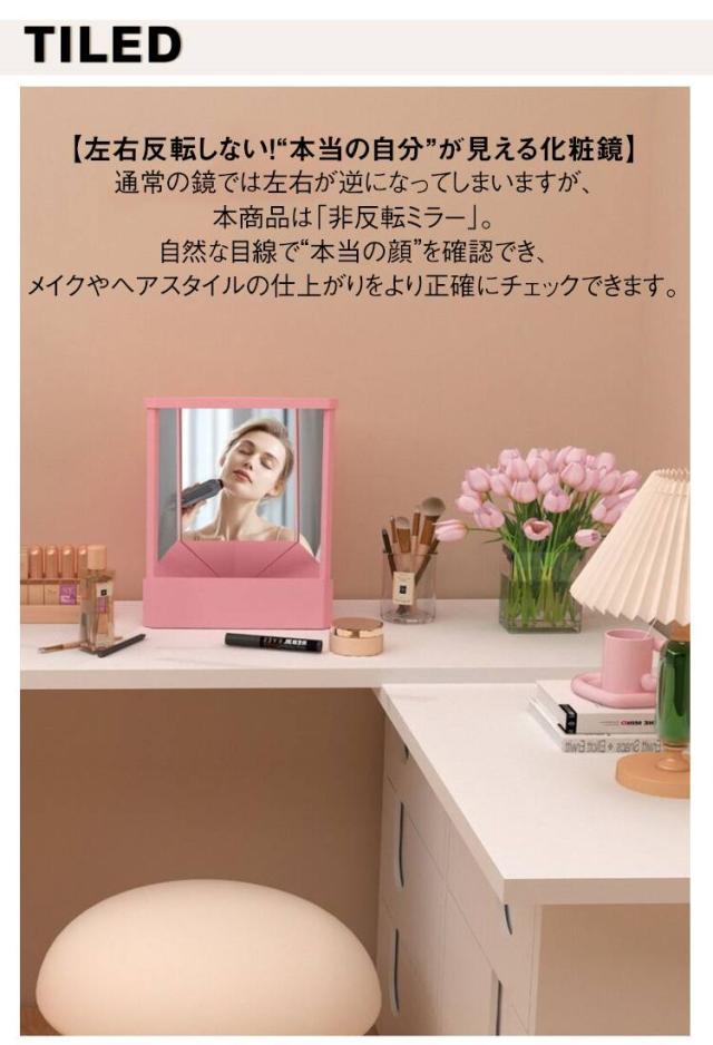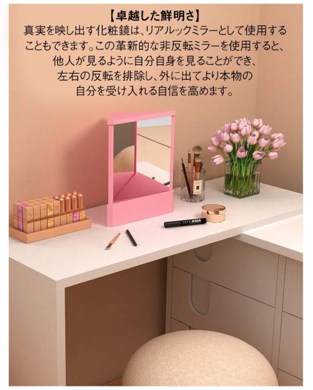 化粧鏡 リバーサルミラー エイキュウ化粧鏡 卓上 リバーサルミラー 左右反転鏡 デスクメイクミラー 非反転ミラー おしゃれ かわいい スタンドミラー メイク 三角固定非反転鏡 本当の自分モデルモデリングインタビュー 化粧台 写真 プレゼント 6色