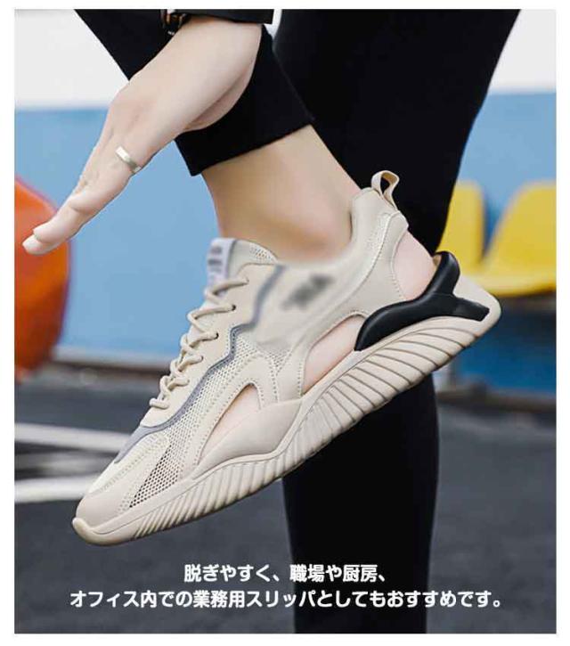 | 炎天下のに足が蒸れなくて涼しい。足元からシーズンムードを感じさせるスニーカーサンダルが登場。1足持っているとオシャレの幅も広がる便利なアイテムです。 脱ぎやすく、職場や厨房、オフィス内での業務用スリッパとしてもおすすめです。 足の怪我でスニーカーが履けない場合にも、安心して履くことができます。 丈夫でかつ通気性もよい利便性と経済性を兼ね備えた1足です。 メッシュデザイン 抜群な通気性、全然蒸れない。 防滑ソール!雨の日も心配ありません。 裸足だけでなく、ソックス合わせのスタイリングも決まる。 フラットなので歩きやすく疲れにくい長く使える〜 履きやすく脱ぎやすい、心地よいフィット感で快適な生地です。 | |