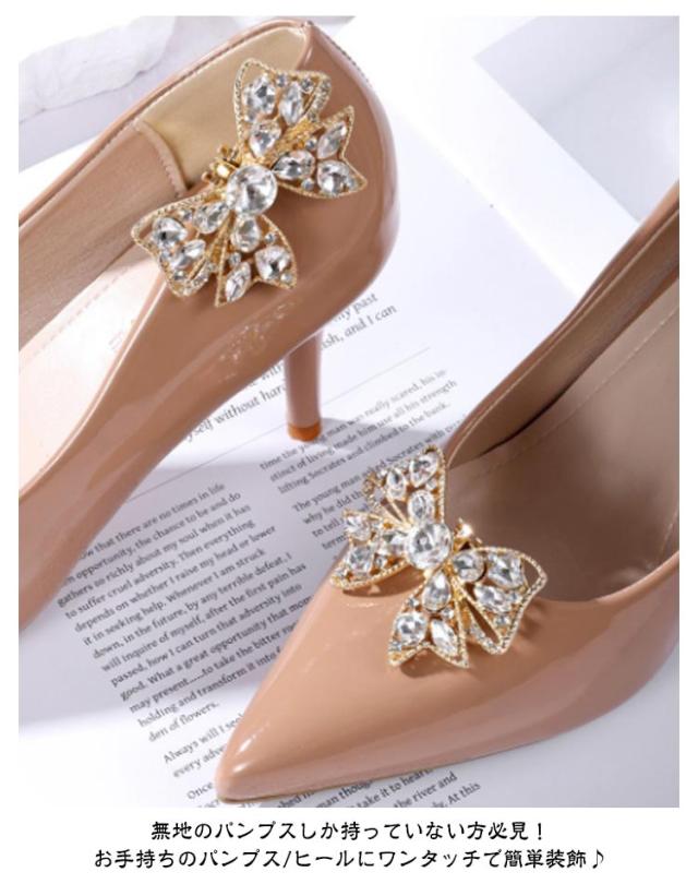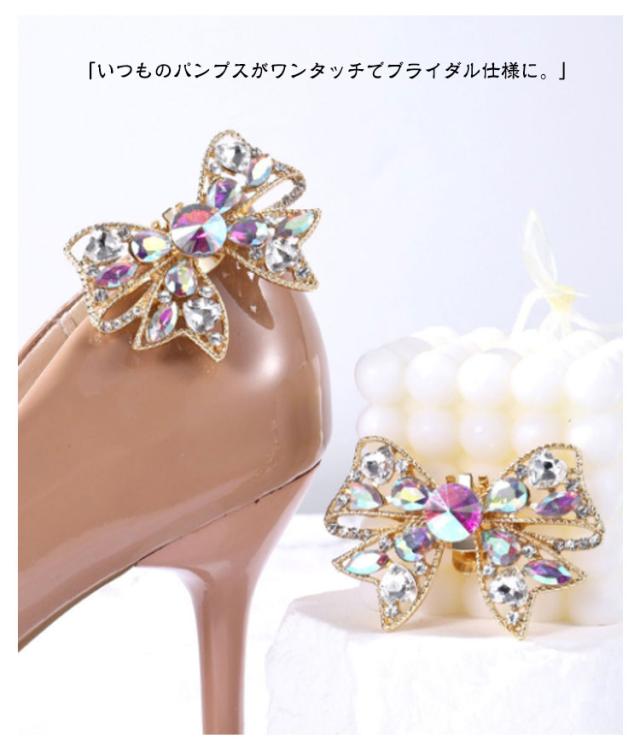 シューズクリップ キラキラ リボン シューズアクセサリー パンプスクリップ お呼ばれ 結婚式 パンプス 飾り 装飾品 クリップ ビジュー 華やか ストーン おしゃれ 取外しOK 着せ替え レディース 女性 セレモニーシューズ 結婚式シューズ シューズパーツ クリップ