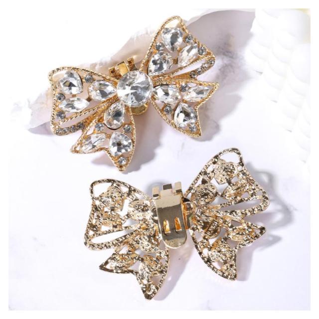 | かわいいリボンデザインのワンタッチシューズクリップ。 キラキラフェイク水晶デザインで上品さを演出 無地のパンプスしか持っていない方必見!お手持ちのパンプス/ヒールにワンタッチで簡単装飾♪ 2個セットですので、靴以外にも帽子やクラッチバッグ、ジャケットのドレスアップにも便利です♪ 「いつものパンプスがワンタッチでブライダル仕様に。」 | |