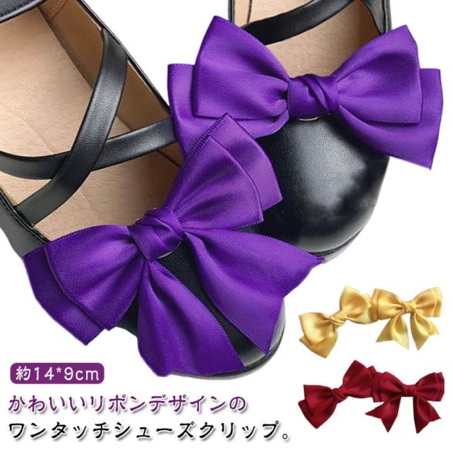 シューズクリップ リボン 無地 シンプル シューズアクセサリー ビジュー 靴クリップ パンプスクリップ お呼ばれ 結婚式 パンプス 飾り 装飾品 クリップ リボンクリップ ビッグリボン かわいい シューパーツ 取外しOK 着せ替え レディース 女性 靴飾り シュークリップ