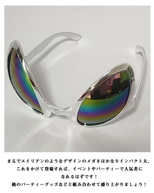 | 宴会要員。それはどのグループにもきっと一人はいる芸達者な人気者! 定番宴会から、度肝を抜くマニアックな宴会まで大活躍。変装メガネは、手軽な仮装でウケを狙える便利なアイテムです! フェスやパーティにピッタリ! POPでキュートなサングラスはSNS映えもばっちり! まるでエイリアンのようなデザインのメガネはかなりインパクト大。これをかけて登場すれば、イベントやパーティーで人気者になれるはずです! 他のパーティーグッズなどと組み合わせて盛り上がりましょう! 実際にメガネをかけるだけなので1秒で変身することができます。メガネにあわせたコスプレをすればさらに宴会感も増しますし、普段着やスーツにメガネをかけると顔と体のギャップがおもしろいという利点もあります。 インパクト大なコミカルデザインが周りの視線を一瞬でさらいます。メガネをかけるだけで手軽にコスプレが楽しめるのも魅力ですね 職場の宴会やパーティーなどの余興用に準備したい人におすすめです パーティーシーズン用に1つあると、皆で使えて重宝するでしょう。迫力のあるメガネで会場の注目を集めたい人は、ぜひチェックしてみてください 素材はプラスチック製です。軽量ですので装着しやすいです。 リアルなエイリアンの目が面白すぎて恐れてしまうほどのインパクトある作り!各種イベント、パーティーでおしゃれに大変身!大活躍、盛り上げてくれること間違いなし! | |