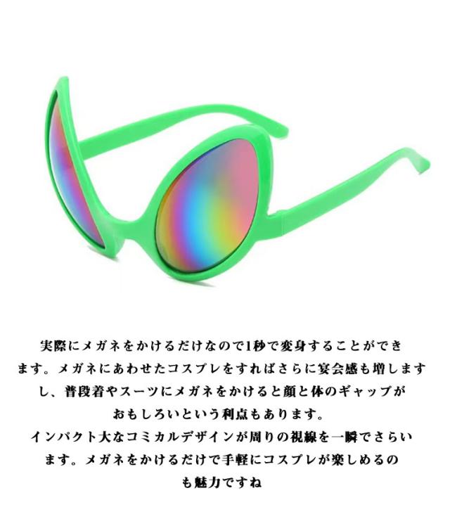2個セット サングラス エイリアンデザイン グリーン コスプレ 2種類レンズ選べる クリスマス ハロウィン 仮装 メガネ 眼鏡 パーティーグッズ イベント用品 面白サングラス 怪物 モンスター 変装 誕生日 室内 置物 クリスマス用品 可愛い かわいい