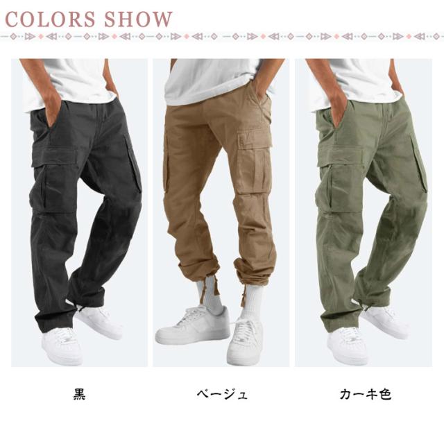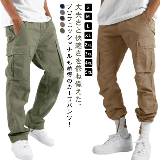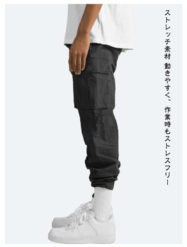 カーゴパンツ メンズ ゆったり 裾絞り 作業着 ズボン パンツ 無地 シンプル ロング ゴムウエスト ワークパンツ 作業着 作業服 大きいサイズ ストレッチカーゴパンツ 太め ポケット 多い ズボン 作業ズボン 作業パンツ