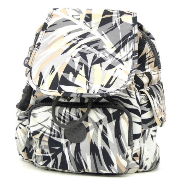 キプリング KIPLING リュック 黒×白×ベージュ ナイロン 【中古】(69157)