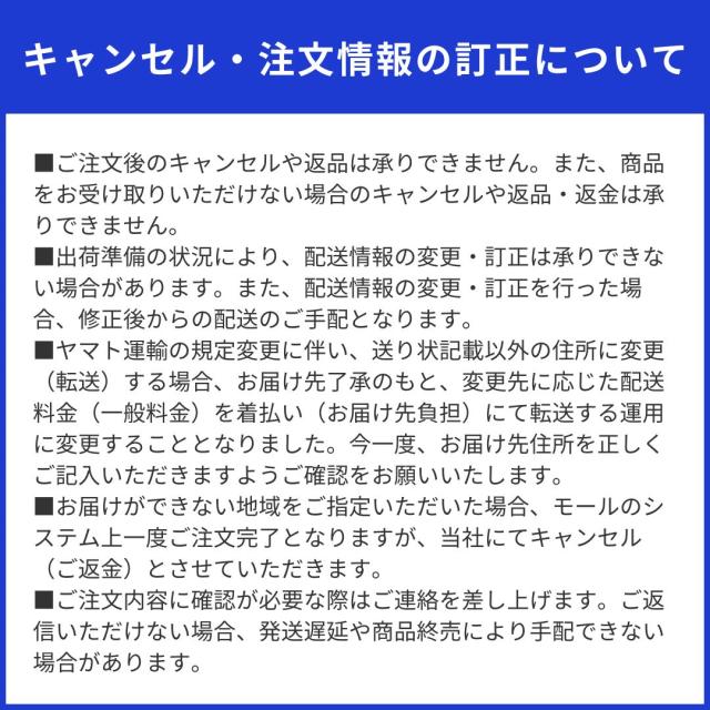 ※お届け先にお届け不可地域をご指定いただいた場合、誠に勝手ながらご注文をキャンセルさせていただきます。あらかじめご了承ください。