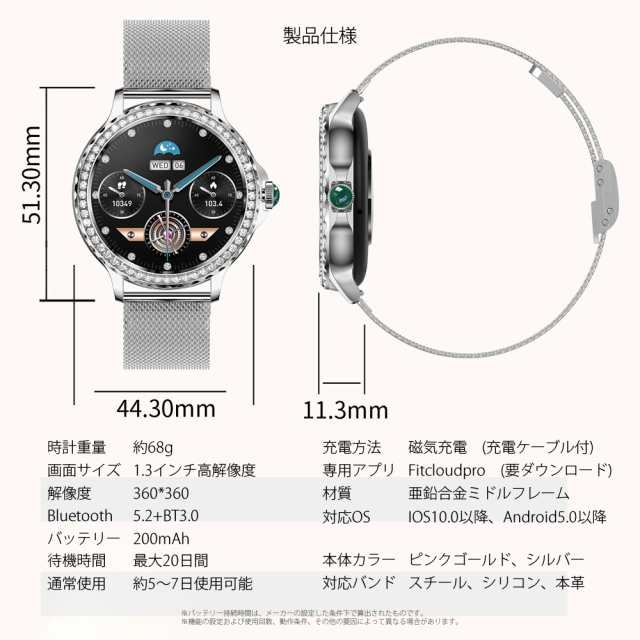スマートウォッチ レディース 1.3インチ大画面 2026最新 通話機能 着信通知 健康管理 生理機能 歩数計 Bluetooth5.2 iphone Android対応 LINE通知 睡眠モード 腕時計 IP68防水 レディース スマートウォッチ 腕時計 おしゃれ 誕生日