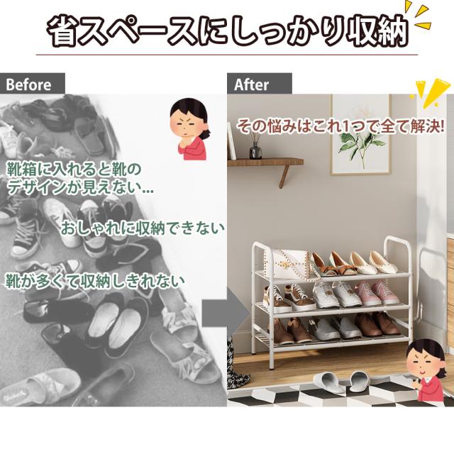 シューズラック 3段 収納 靴置き 分割可能 靴 収納 玄関 スリム 靴箱 下駄箱 靴入れ 金属製 頑丈 省スペース 玄関収納 大容量 組立簡単 幅約74*奥行約30*高さ約54? おしゃれ