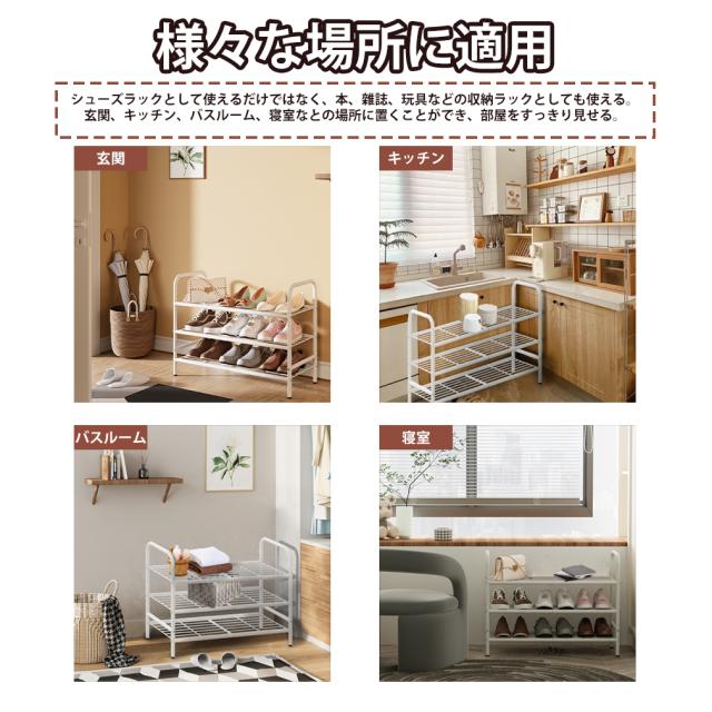 【多目的用途】靴だけでなく、普段使う収納ラックとしても大活躍です!リビングルームでは雑誌やぬいぐるみを整頓、寝室では折りたたんだ衣類を収め、キッチンではスナックや調味料をまとめるのに最適です。場所を選ばないのも魅力です!