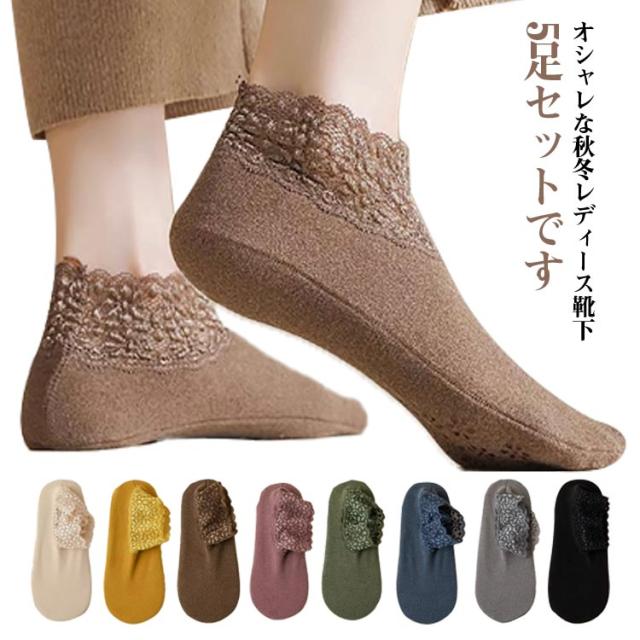 レディース レース くるぶし 冬 靴下 室内履き もこもこ 裏起毛 ショート ソックス 厚手 あったか 秋 ソックス 厚手 防寒 保温 暖かい ソックス フリース 滑り止め付き フットカバー 5足セット 足首 おしゃれ