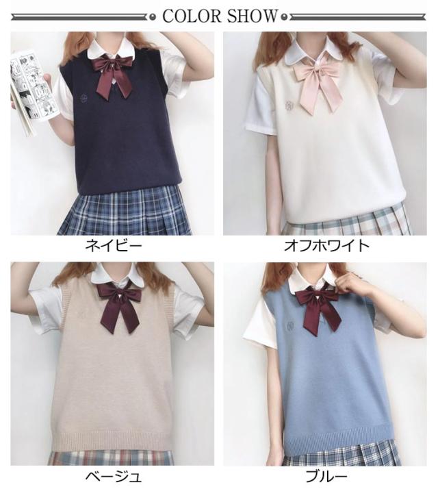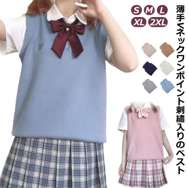 ベスト 刺? スクール 女子高校生 スクールベスト Vネック 薄手 秋 ニットベスト 学生服 春夏 女子 女の子 高校生 制服 学校 中学生 無地 シンプル 刺繍 ししゅう ワンポイント 大きいサイズ