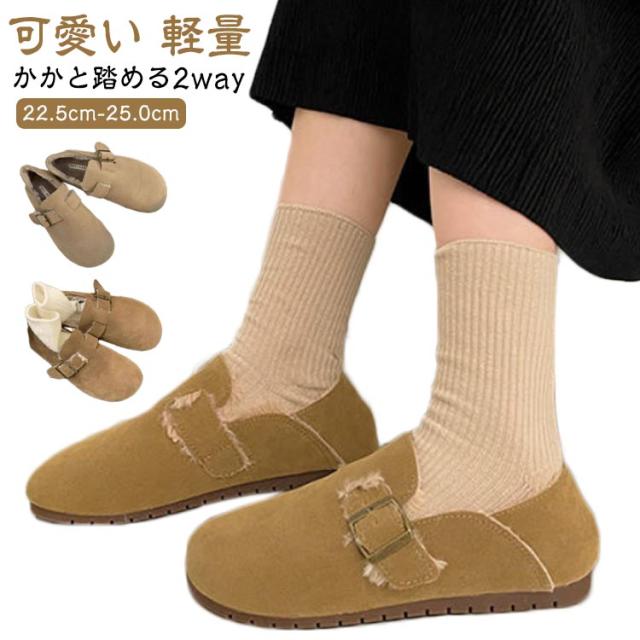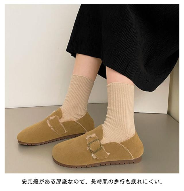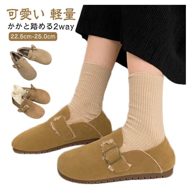 レディース パンプス スリッポン スエード ぺたんこ 裏起毛 ムートン サボ ローファー 可愛い ローヒール ぺたんこ 冬 春 秋 裏起毛 裏ボア フラットシューズ サンダル モカシン バブーシュ オペラシューズ 2way カジュアル 防寒