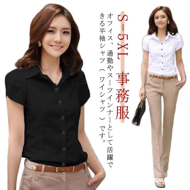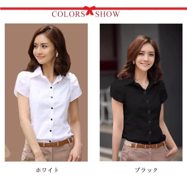 レディース シャツ カジュアル レディース ブラウス 半袖 制服 チューリップ袖 パフ袖 パフスリーブ ビジネス 事務服 ビジネス トップス 白シャツ フォーマル ワイシャツ Yシャツ フレア 無地 オフィス 通勤 襟付き 大きいサイズ 春 夏 秋 ホワイト OL
