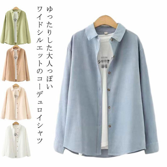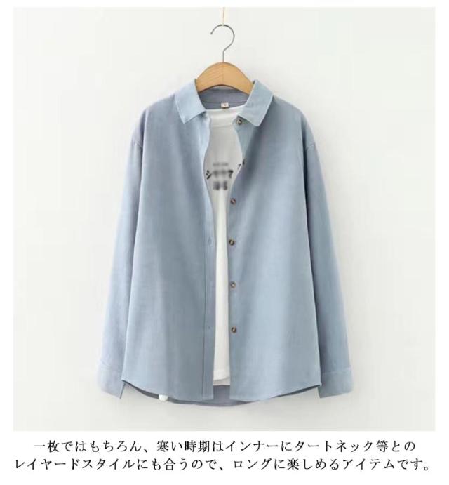 細畝 コーデュロイ シャツ レディース 長袖 トップス ブラウス ネルシャツ 無地 カラーシャツ コーデュロイシャツ あったか 秋 冬 長袖シャツ ゆったり シンプル 秋物 体型カバー 着?せ 大人 カジュアル おしゃれ 大きいサイズ 【送無】