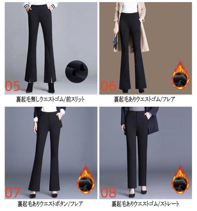 暖かい パンツ 裏起毛 フレアパンツ ブーツカット 冬 フレアパンツ ハイウエスト 秋 ウエストゴム/ボタン ストレート スキニーパンツ スラックス ボトムス ロングパンツ ストレッチ 春夏 オフィス カジュアル フォーマル 大きいサイズ 大人 きれいめ スリムパンツ