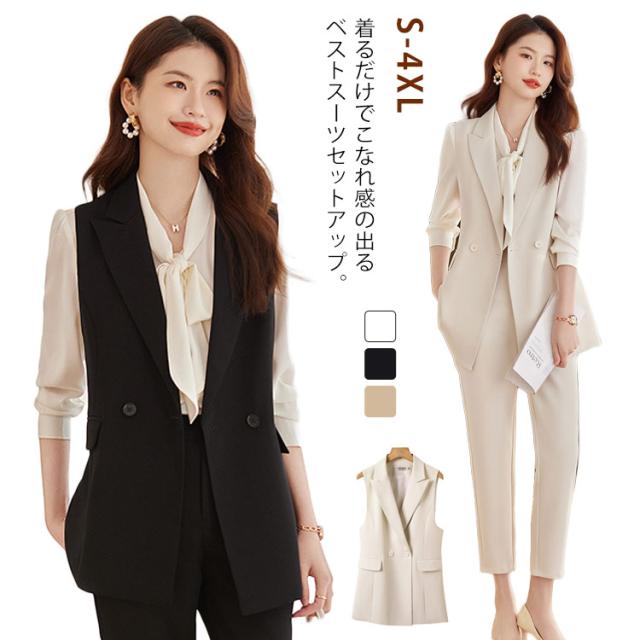 ベスト スーツベスト 入園式 テーパードパンツ カジュアル パンツセットアップ ママスーツ ロングジレ レディース 入学式 セットアップ 通勤 OL セレモニー パンツスーツ フォーマル 春 秋 夏
