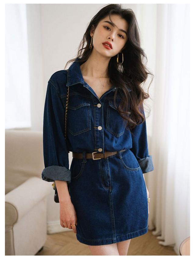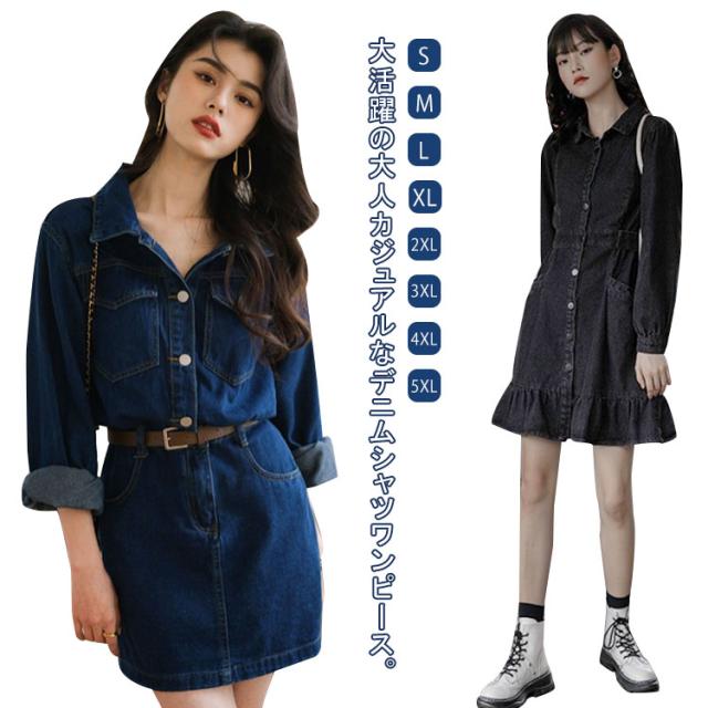 タイト レディース 長袖 デニム タイトワンピース シャツワンピース ロングワンピース 美シルエット 可愛い 大きいサイズ ひざ丈 デニムシャツ 春服 デニムワンピース 秋 無地 体型カバー カジュアル シンプル タイト 送料無料 ワンピース