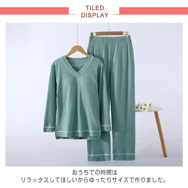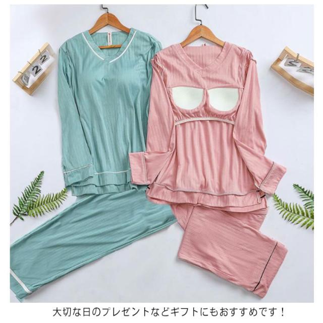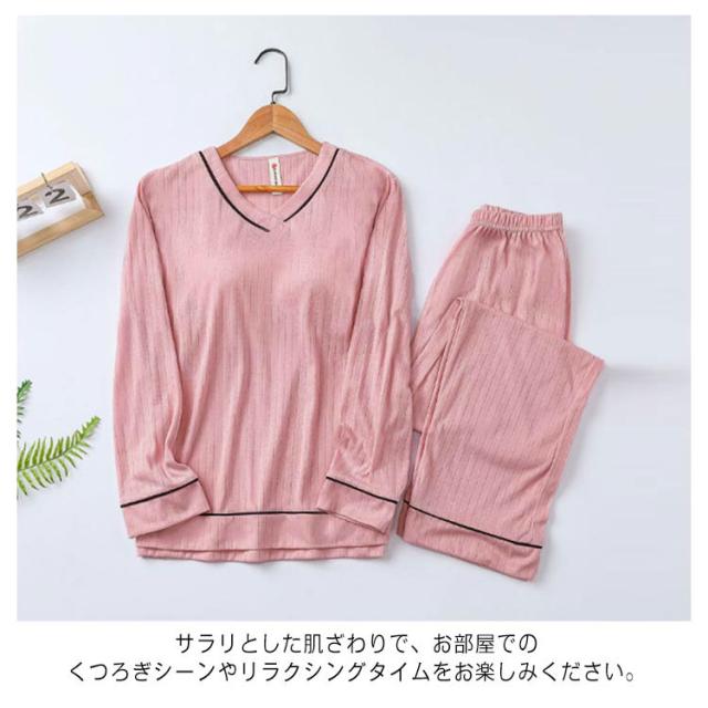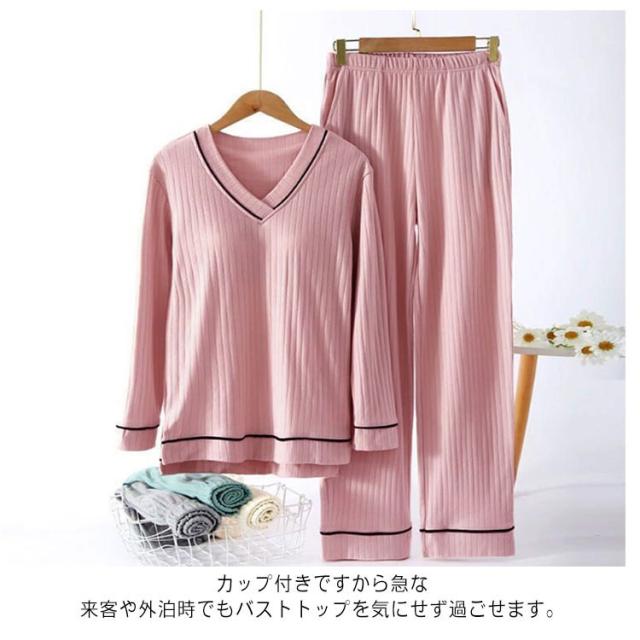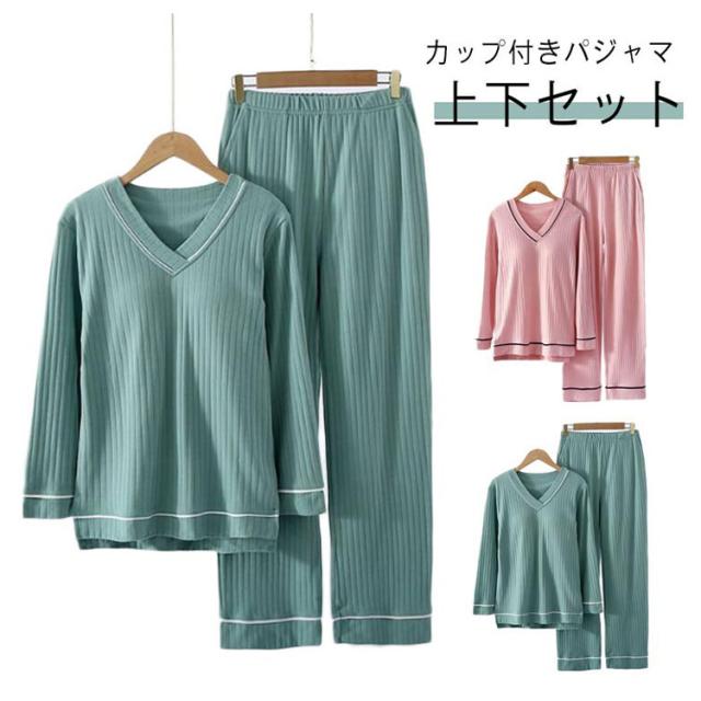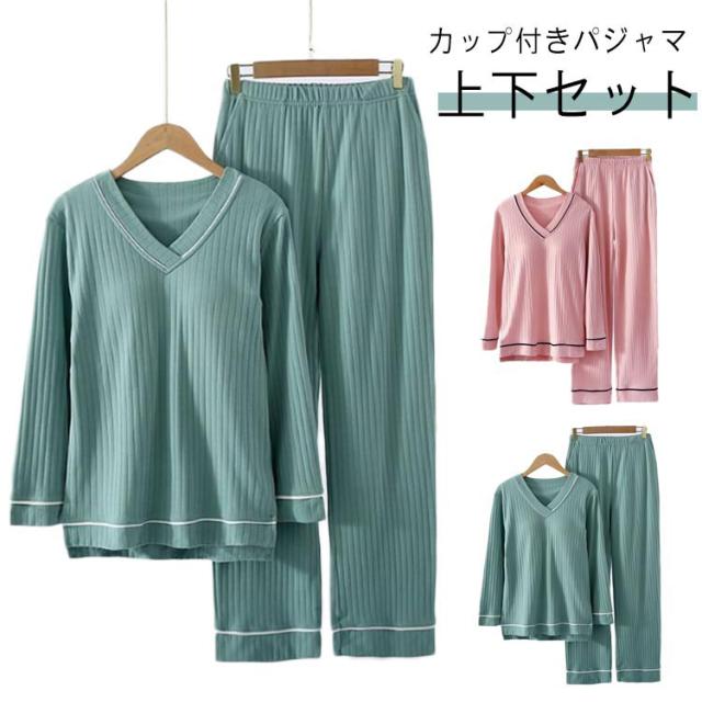 ナイトウェア パンツ ゆったり 快適 リブ パジャマ ルームウェア 上下セット 長袖 大きいサイズ レディース セットアップ ウエストゴム カップ付き 寝間着 無地 春 夏 秋 柔らか 可愛い 贈り物 プレゼント ギフト 部屋着