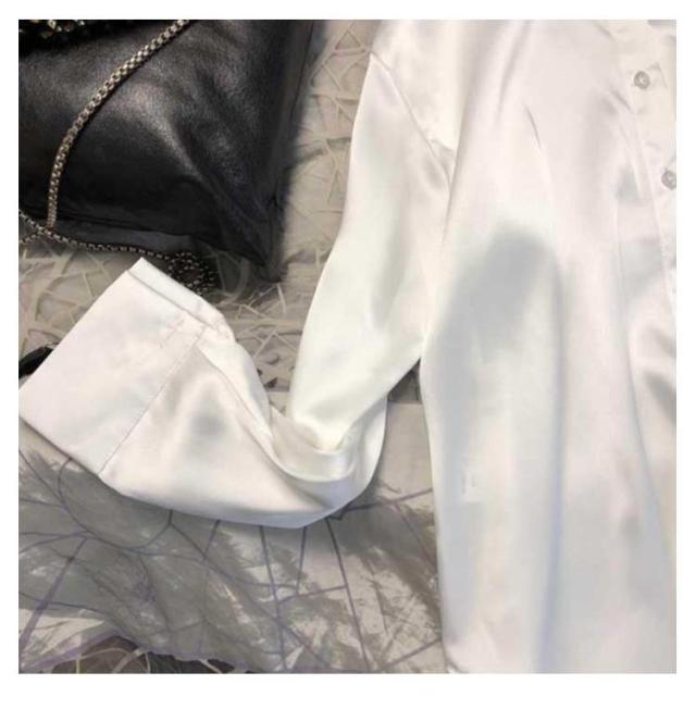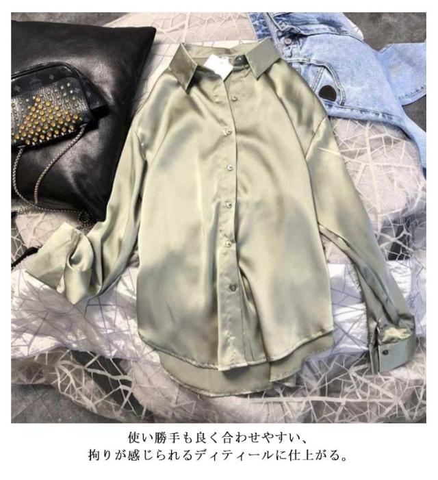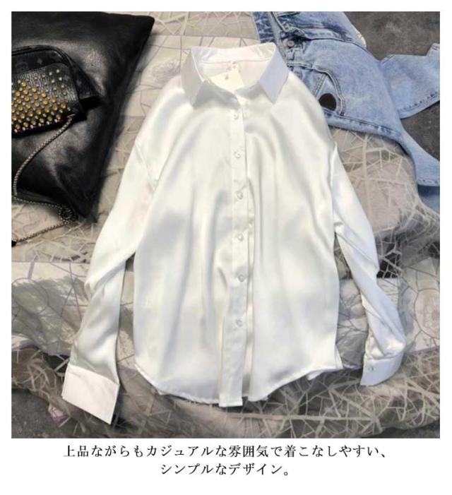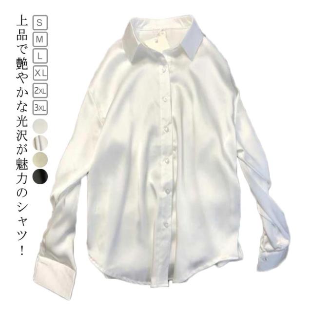 大きいサイズ 光沢感 レディース おしゃれ 無地シャツ 長袖 高級感 大人 スーツシャツ 事務 ワイシャツ 長袖 秋 女性 通勤 オフィス OL 長袖シャツ 制服 事務服 春 夏 上品 トップス ゆったり 体型カバー シルクタッチ