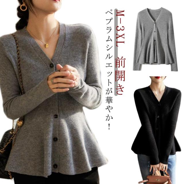 ニット ニットカーディガン ニット レディース フレア カーディガン 春 ペプラム トップス ペプラムカーディガン 羽織り ペプラム 長袖 Vネック ニットプルオーバー 前開き フィット 上品 フェミニン ペプラム 秋