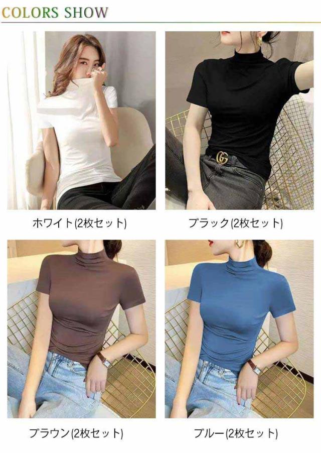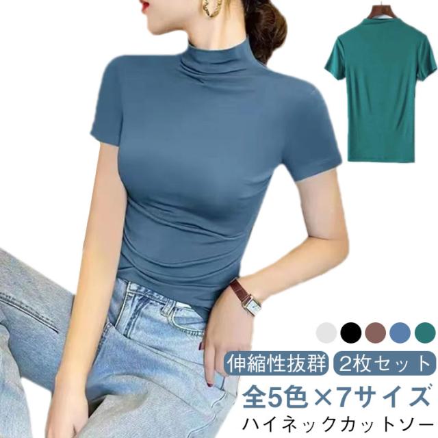 シンプル 【2枚セット】UVカット カットソー シンプル 速乾 夏 半袖 吸汗 ハイネックtシャツ 半袖tシャツ 無地 【2枚セット】UVカット トップス レディース 送料無料 きれいめ 夏服 ハイネック インナー 秋 春 30代
