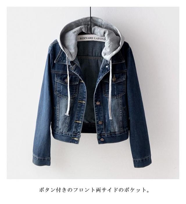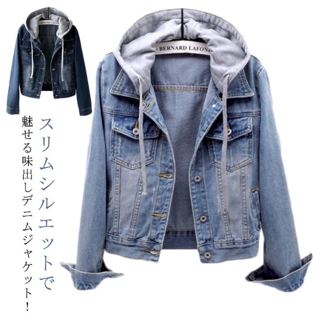おしゃれ フード付き レディース デニムジャケット スリム ジャケット ジージャン ショート丈 カジュアル 長袖 ブラック 大きいサイズ 襟付き Gジャン Gジャン 秋 冬 秋冬 ストリート 韓国 ファッション アウター キレイめ