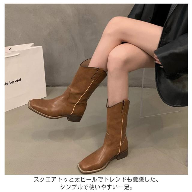 レディース 疲れない ワークブーツ スクエアトゥ ショートブーツ 歩きやすい 婦人靴 大きいサイズ ブラック おしゃれ ローヒール 太ヒール 美脚 ブーツ 春 夏 秋 黒 ミドルブーツ