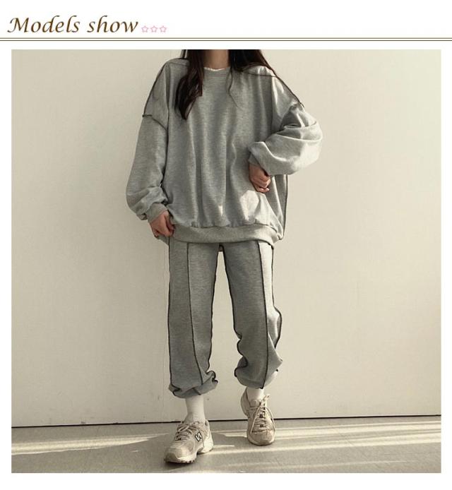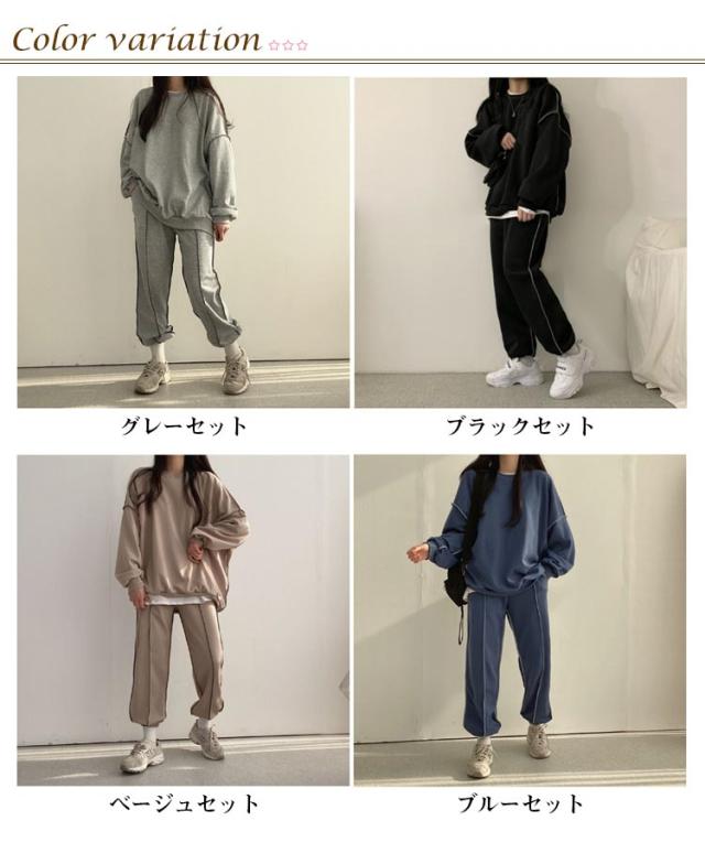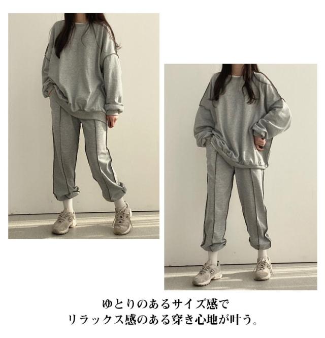 | レディーススウェット上下セット ゆとりのあるサイズ感でリラックス感のある穿き心地が叶う。 トレンドのデザインが今っぽい雰囲気にしてくれます。 ルームウェアやパジャマとしてはもちろん、近所へのお散歩やお出かけにも着用いただけるワンマイルウェアとしても活躍してくれます! セットはもちろん、上下別々でも使いやすく、コーディネートの幅が広がる嬉しいアイテムです。 | |