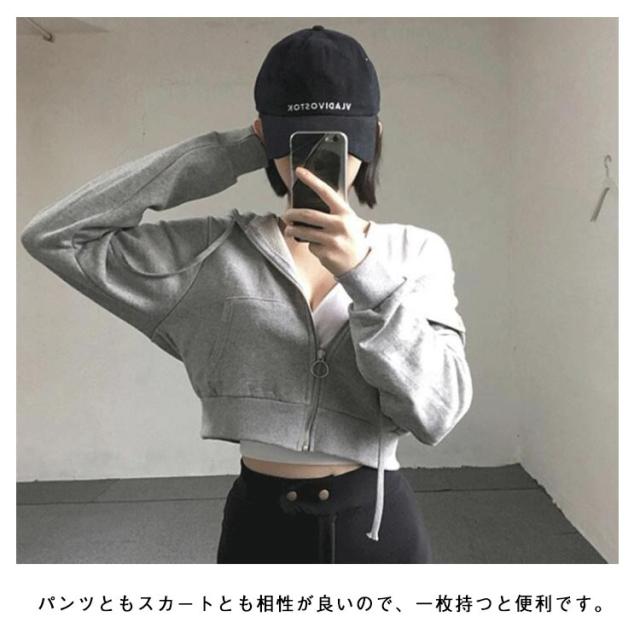 パーカー 春 ショート丈 薄手 長袖 ジップアップ ショートパーカー トップス ゆったり パーカー 前開き UVカット レディース UV ジップアップパーカー 夏 秋 おしゃれ かわいい ゆったり カジュアル 長袖 韓国