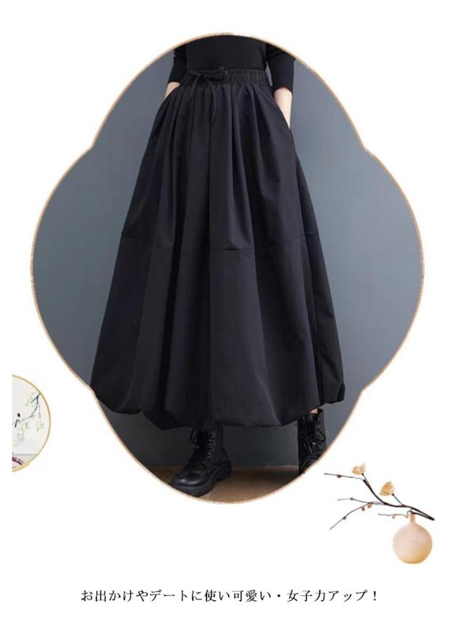 バルーンスカート ボトムス 大きいサイズ バルーンスカート フレアスカート 春 黒 フレア スカート バルーンスカート 大人可愛い 秋 冬 薄手 レディース ミモレ丈 シンプル きれいめ 体型カバー ゴムウェスト 着痩せ 通勤 ロングスカート 春 夏 秋 冬 ブラック カジュアル
