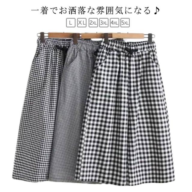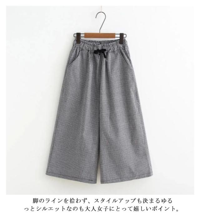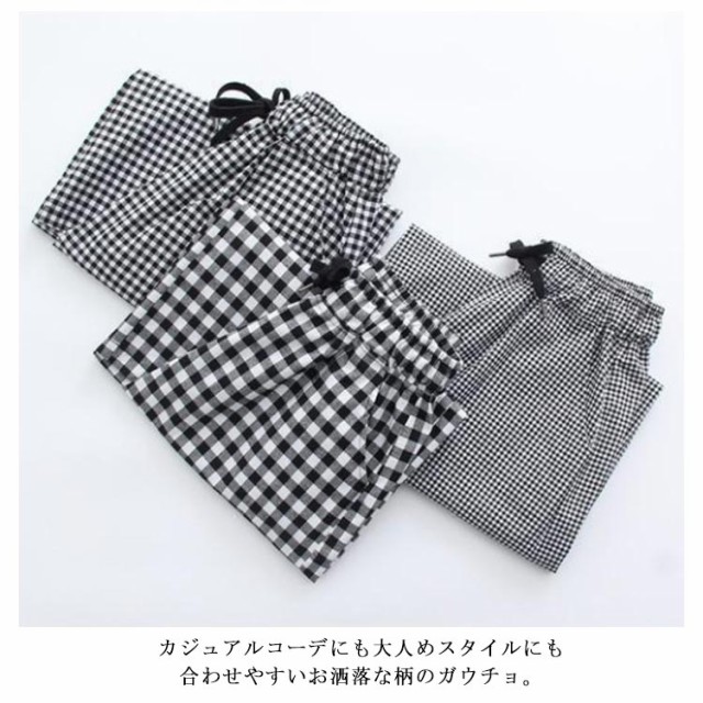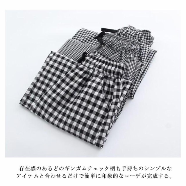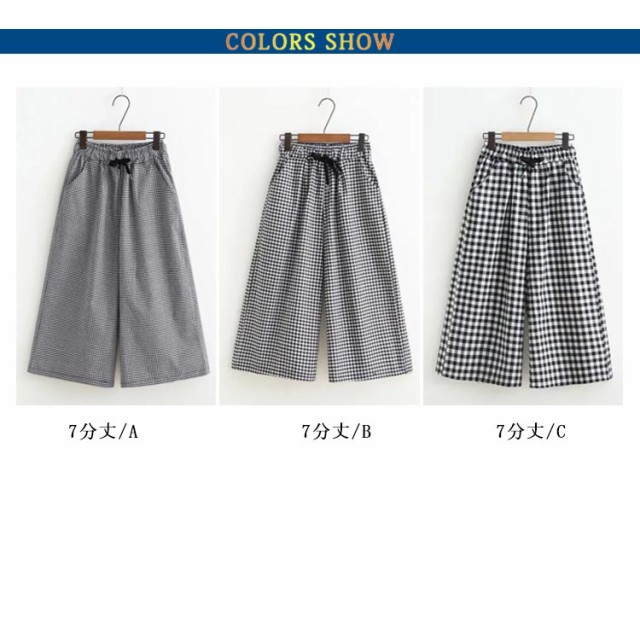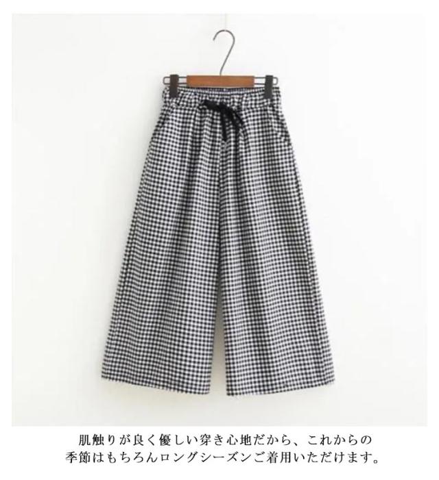 ワイドパンツ 7分丈 チェック 春夏 ウエストゴム ゆったり ルームウエア ガウチョパンツ 薄手 ギンガムチェック 大きいサイズ 着痩せ ハイウエスト 七分丈パンツ 体型カバー パンツ 秋 夏 春 美脚 部屋着 レディース