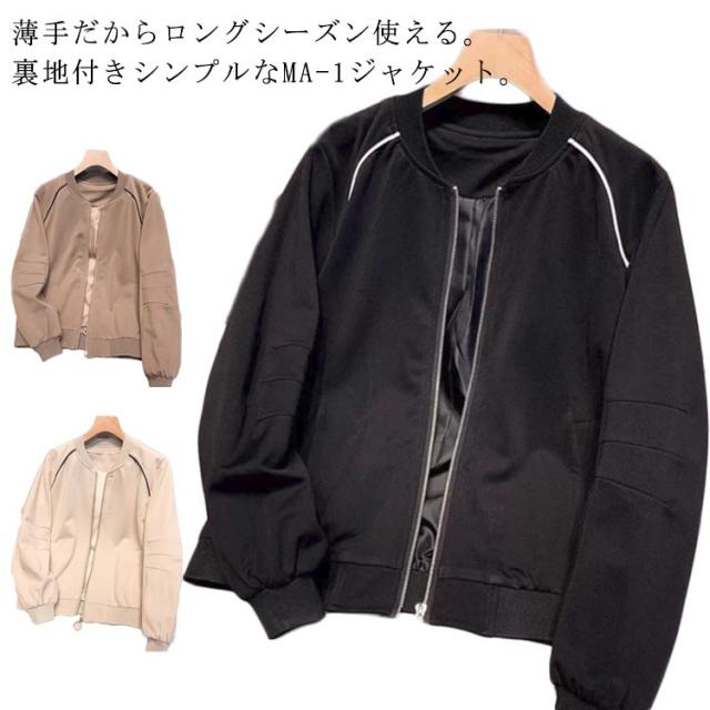 ジャケット 軽量 ライトアウター 春 ショート丈 MA-1 ブルゾン ミリタリー MA-1 秋 ゆったり 裏地付き 羽織り カジュアル ミリタリージャケット レディース 無地 シンプル アウター フライトジャケット ベージュ ブラウン 黒 ブラック 大きいサイズ