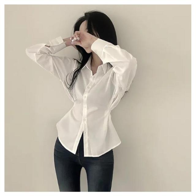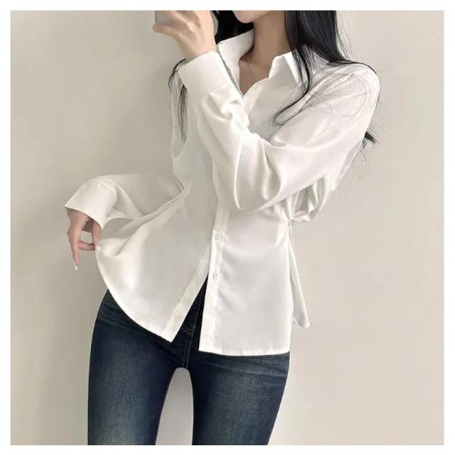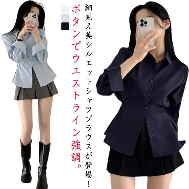 ブラウス シンプル シャツ シャツブラウス レディース 白シャツ 通勤 ワイシャツ 襟付き S-XL スリム 春 チュニック 秋 夏 無地 オフィス カジュアル ホワイト おしゃれ きれいめ 上品 細見え 韓国ファッション トップス 白 ブルー ネイビー 3色 長袖