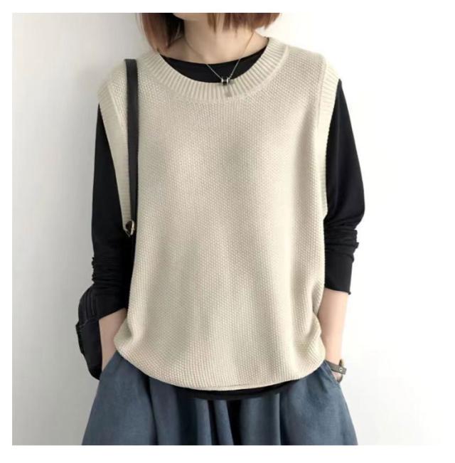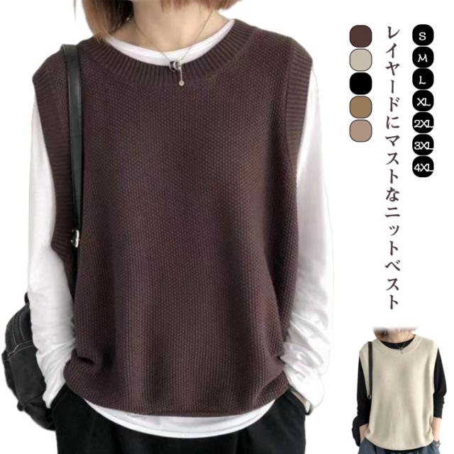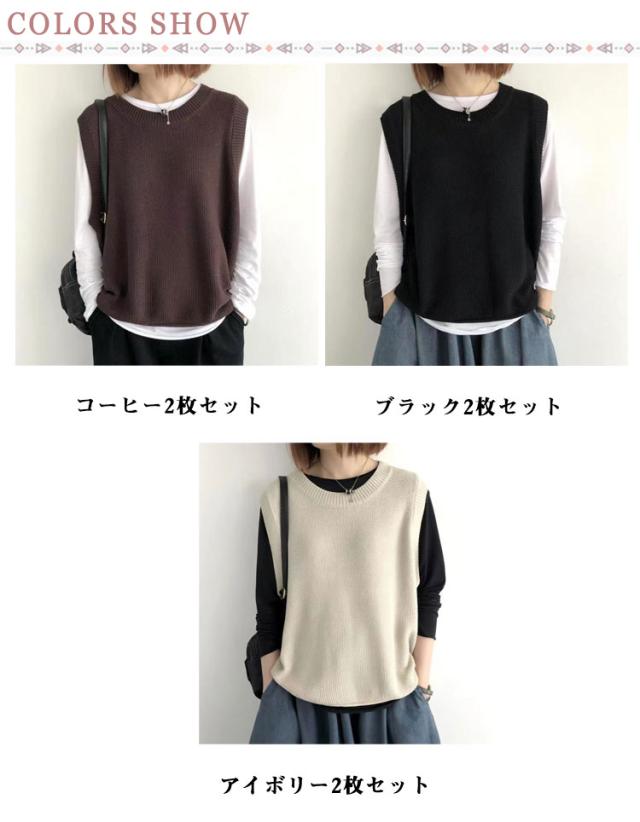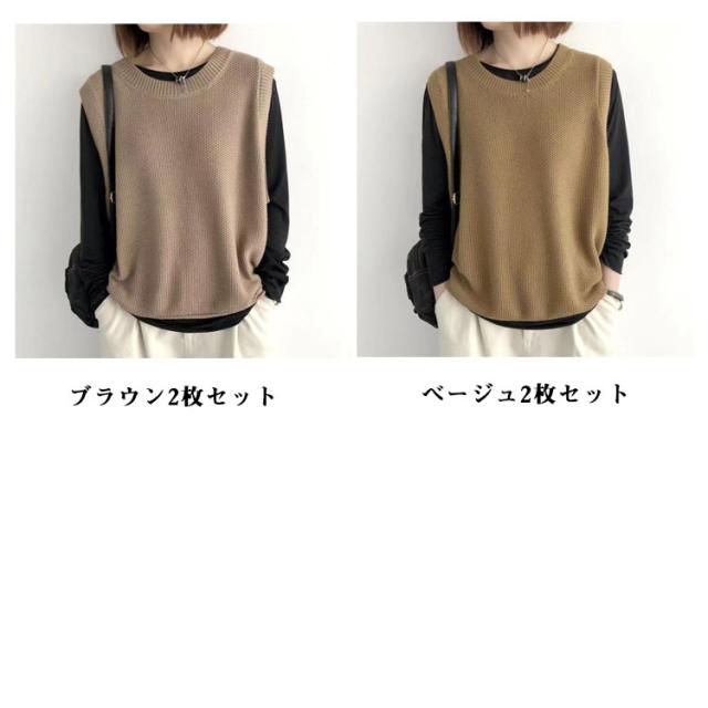 秋コーデ ノースリーブ トップス レディース 重ね着 無地 Vネック ゆったり 2枚セット ベスト ジレー セーター 2枚セット プルオーバー チョッキ カジュアル タンクトップ トップス 重ね着 あったか