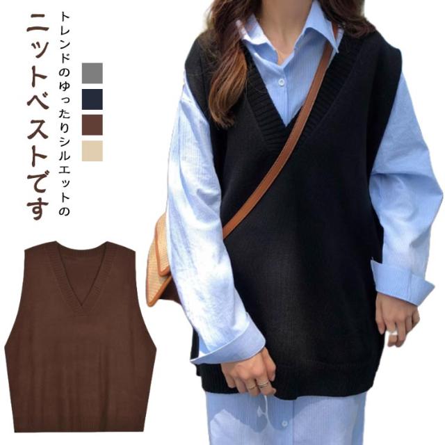 ジレ ニットベスト ノースリーブ トップス ロングベスト プルオーバー ゆったり セーター Vネック きれいめ 無地 大きめ 大人可愛い レイヤード 重ね着 カジュアル ニットベスト おしゃれ 春 秋 冬