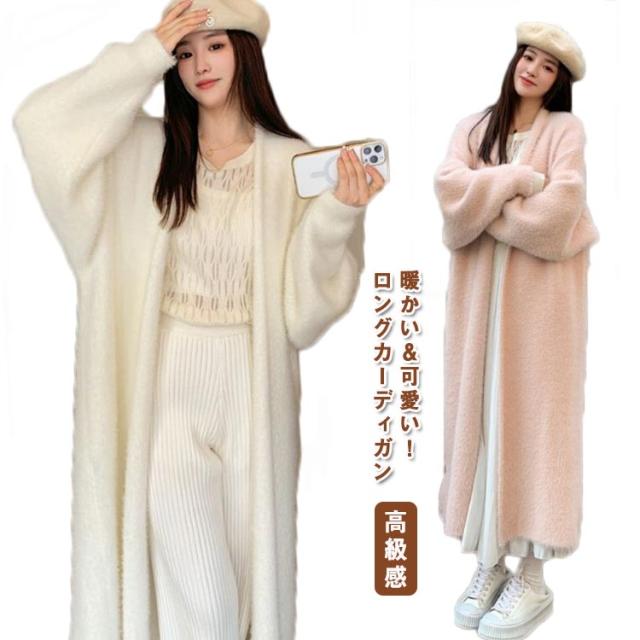 ロングカーディガン もこもこ 春 秋冬 秋 コーディガン ふわふわ 冬 カーディガン 大人 ニット ロング丈 カジュアル ロング 長袖 体型カバー シンプル 羽織り 高級感 アウター ニットカーディガン 通勤 室外 オフィス きれいめ レディース