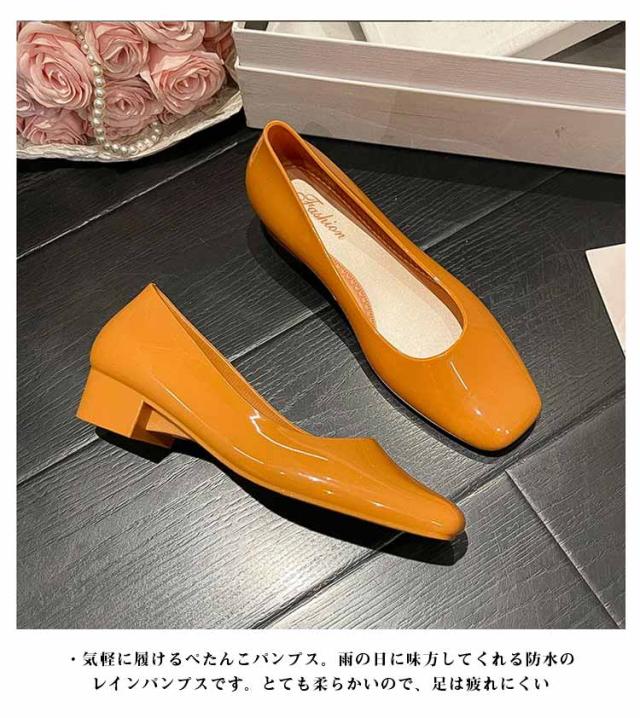 レインシューズ 3cm パンプス レディース 雨靴 レインシューズ 梅雨 レインパンプス レインブーツ ローヒール スクエアトゥ 雨 雨靴 レインアイテム 雨の日 通勤 オフィス ヒール 旅行 おしゃれ 柔らかい ブラック ベージュ 黄色