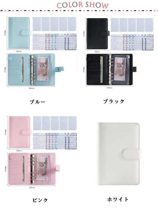 家計 家計管理 6穴 サイドポケット リフィル 袋分け ファイル お金管理 マルチケース 5枚ファスナーポーチ ケース カード入れ 大容量 やりくり上手 封筒 かわいい A6サイズ グッズ バインダー パスポートカバー クリアポケット 管理 家計簿 月謝 食費 生活費