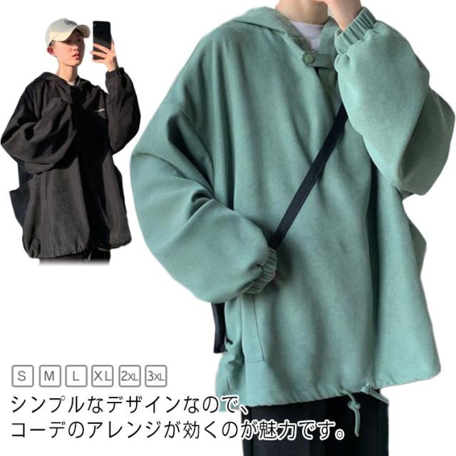 ドルマンスリーブ メンズ スエット プルオーバーパーカー メンズパーカー キレイめ パーカー 暖かい パーカー プルオーバーパーカー 長袖 トレーナー ボリュームネックパーカー 大きいサイズ ゆったり 秋 春 冬